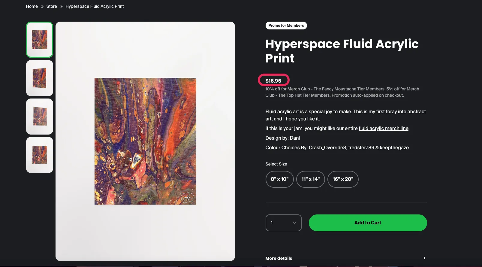 One key benefit of using Fourthwall is that it allows you to set your own pricing on any of your wall art items. Whether you're selling canvas prints, posters, or wall calendars, you have the flexibility to choose the price that aligns with your value and business goals.