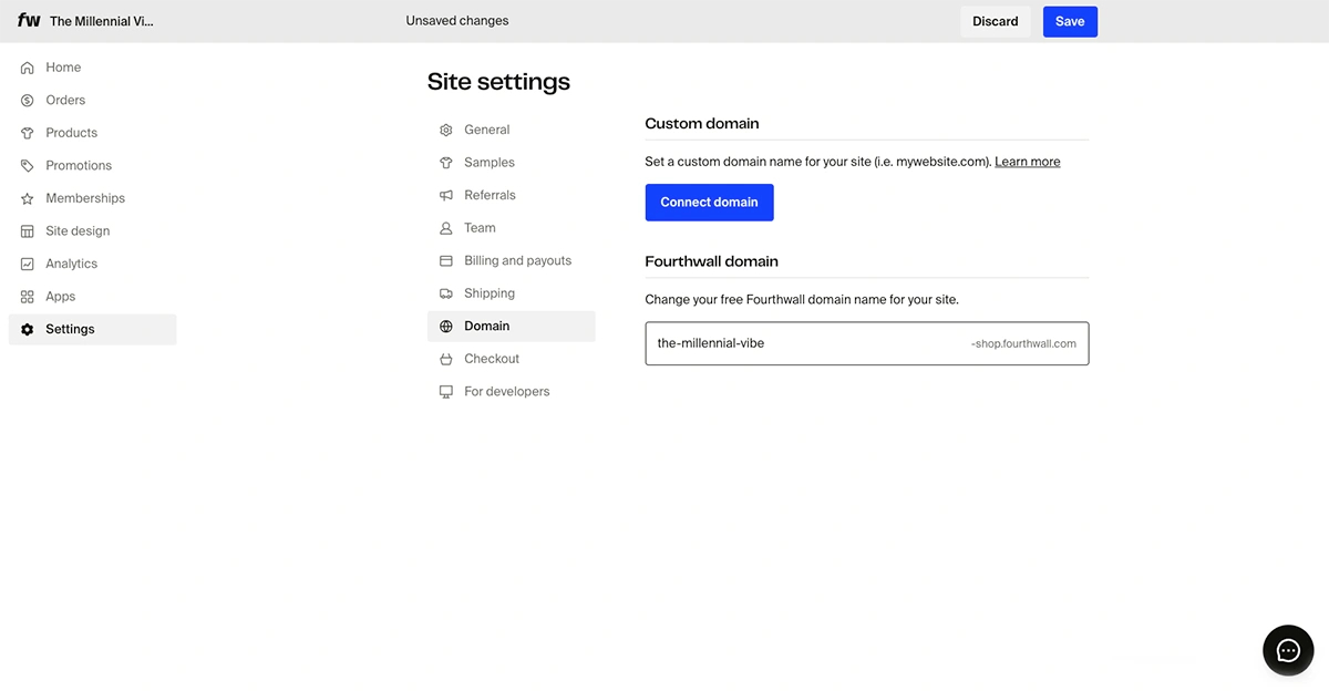 Fourthwall Pro subscribers receive a free custom domain upon upgrading.