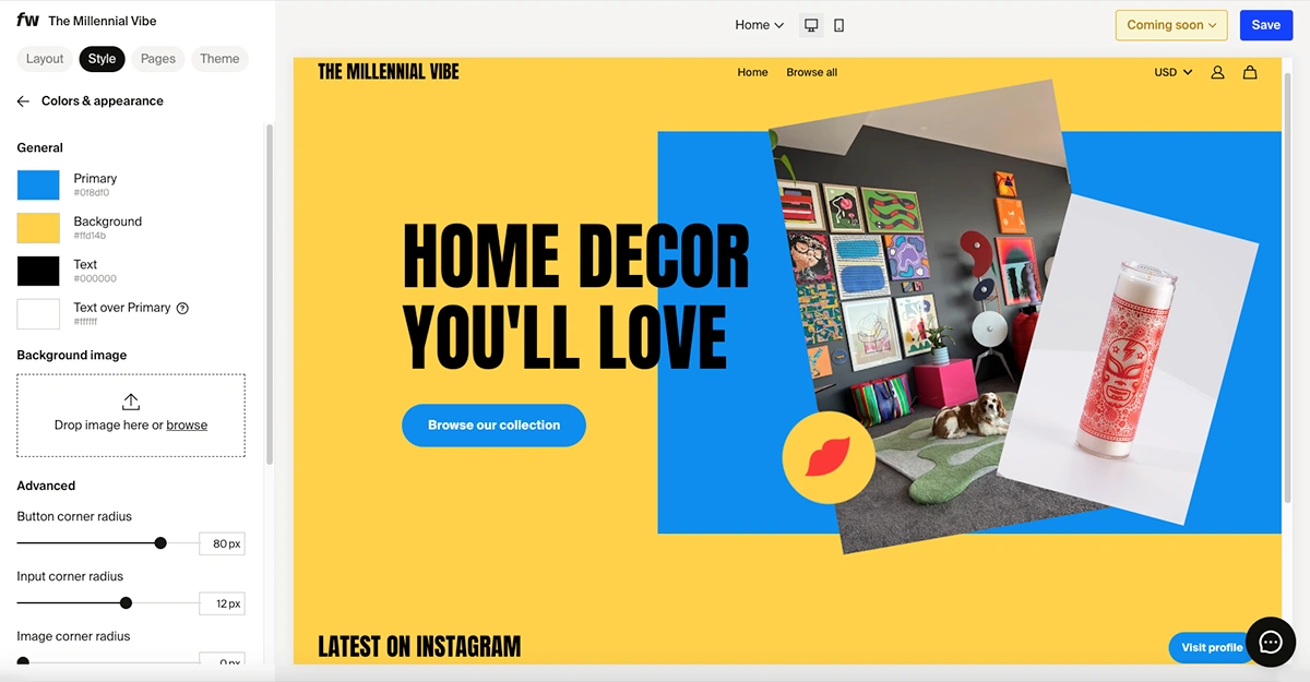 You can choose from clean, high-converting themes designed to showcase your products, whether you're featuring cozy textiles, minimalist wall art, or bold home accessories.
