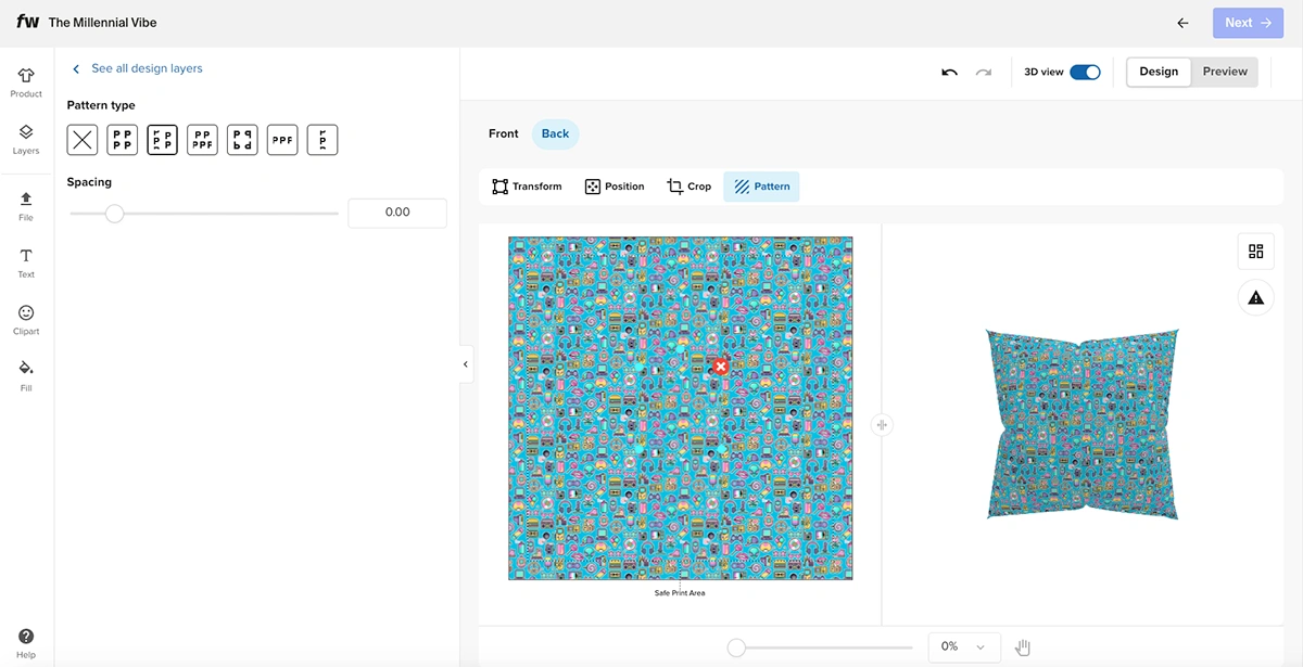 Once you’ve nailed your visuals, head over to Fourthwall’s product catalog and choose the home decor items that best fit your style. You can upload your artwork directly to each product and fine-tune the design placement using our intuitive design tools.