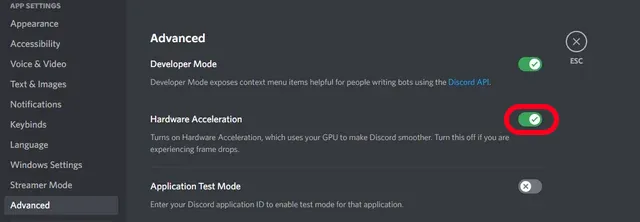 Discord has two hardware acceleration settings:
