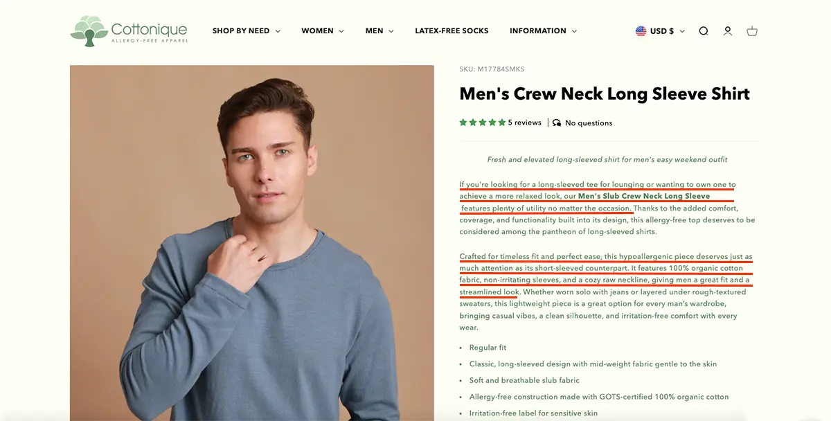 Focusing on a product’s benefits rather than relying solely on its features is essential in effective description writing. While highlighting attention-grabbing features like "vegan ingredients" or "cruelty-free" can attract customers, it's even more impactful to explain how these features enhance their lives.