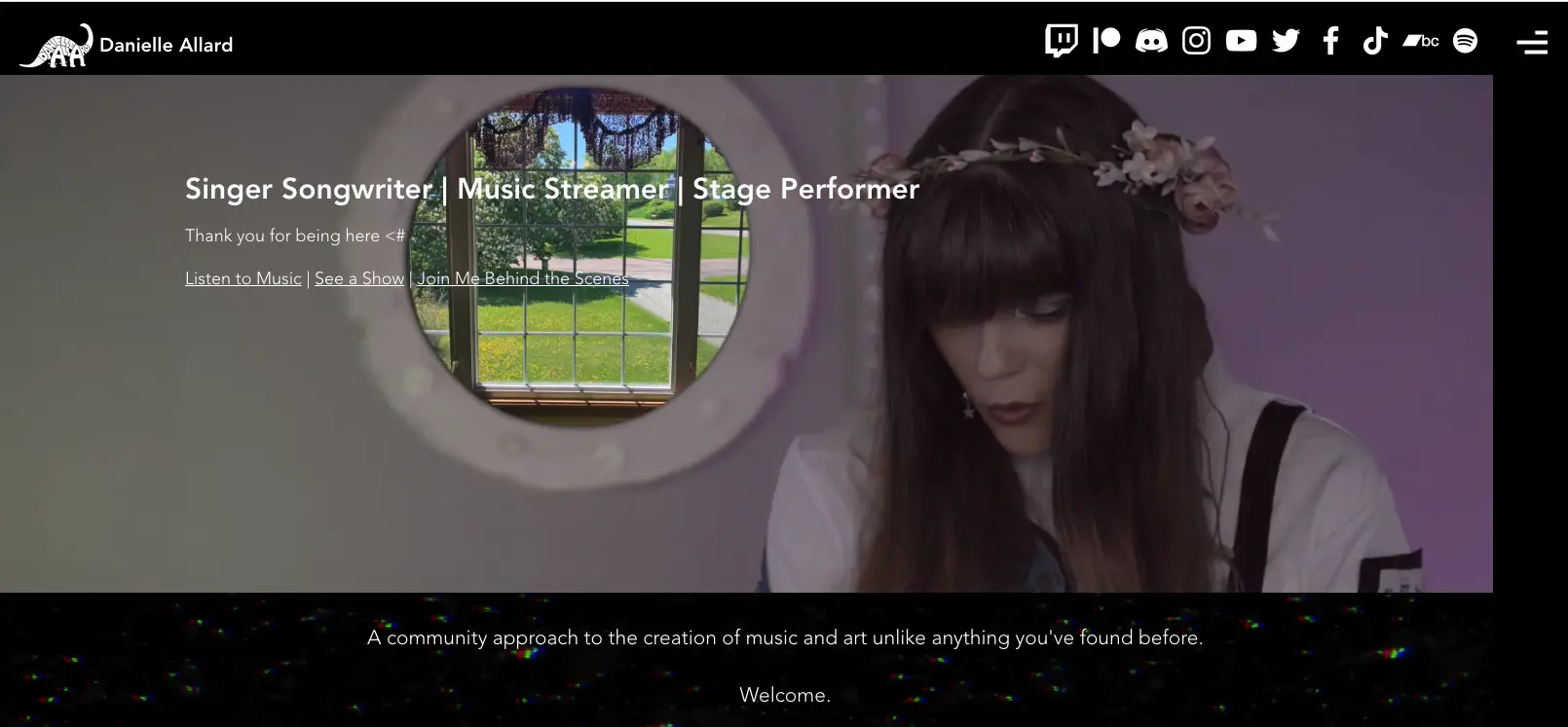 Danielle Allard, a talented musician and streamer, ingeniously integrates creative calls to action (CTAs) across her website, enhancing user engagement and interaction. Upon visiting her website, users are immediately greeted with a visually appealing layout that encapsulates Allard's artistic flair.