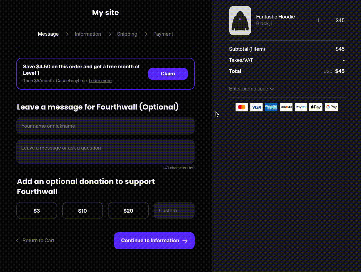 Yes! Fourthwall operates as the "Merchant of Record" and automatically supports the following payment methods on checkout: