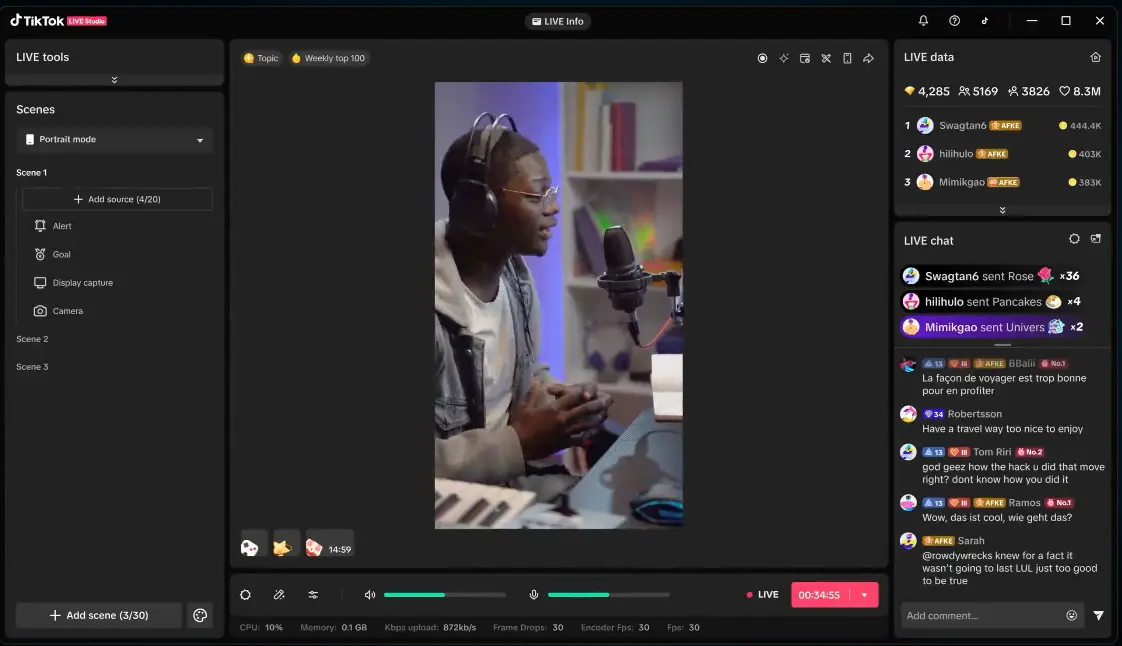 TikTok Live Studio allows for more personalized streams, supporting gaming content and other live event styles through features like viewer rankings, countdown widgets, and real-time analytics, ensuring creators never miss a comment, Gift, or new follower.