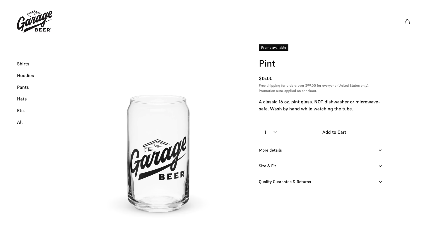 Garage Beer’s merch store goes beyond being a simple side project. It’s a key part of their brand, built right into their main website and crafted to match the same chill, down-to-earth vibe as their beer.