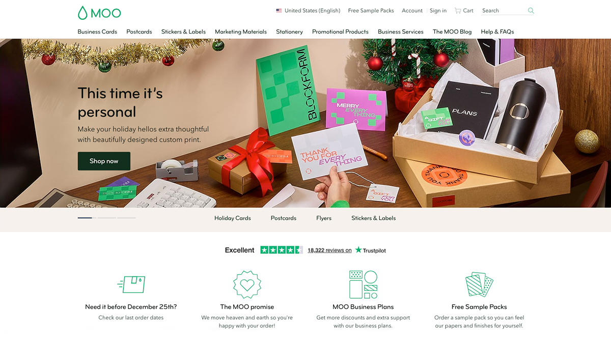 MOO serves customers globally with hubs in both the UK and the US, and its obsession with design, sustainability, and human-first service has made it a favorite among creators and brands who want their print to leave a lasting impression.