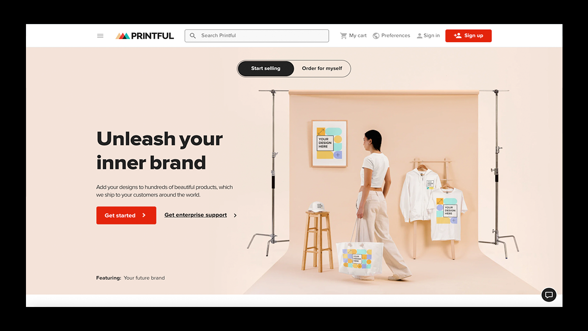 Beyond product fulfillment, Printful gives sellers access to advanced branding tools, including custom packaging, inside pack-ins, branded labels, and even warehousing services for their own inventory.