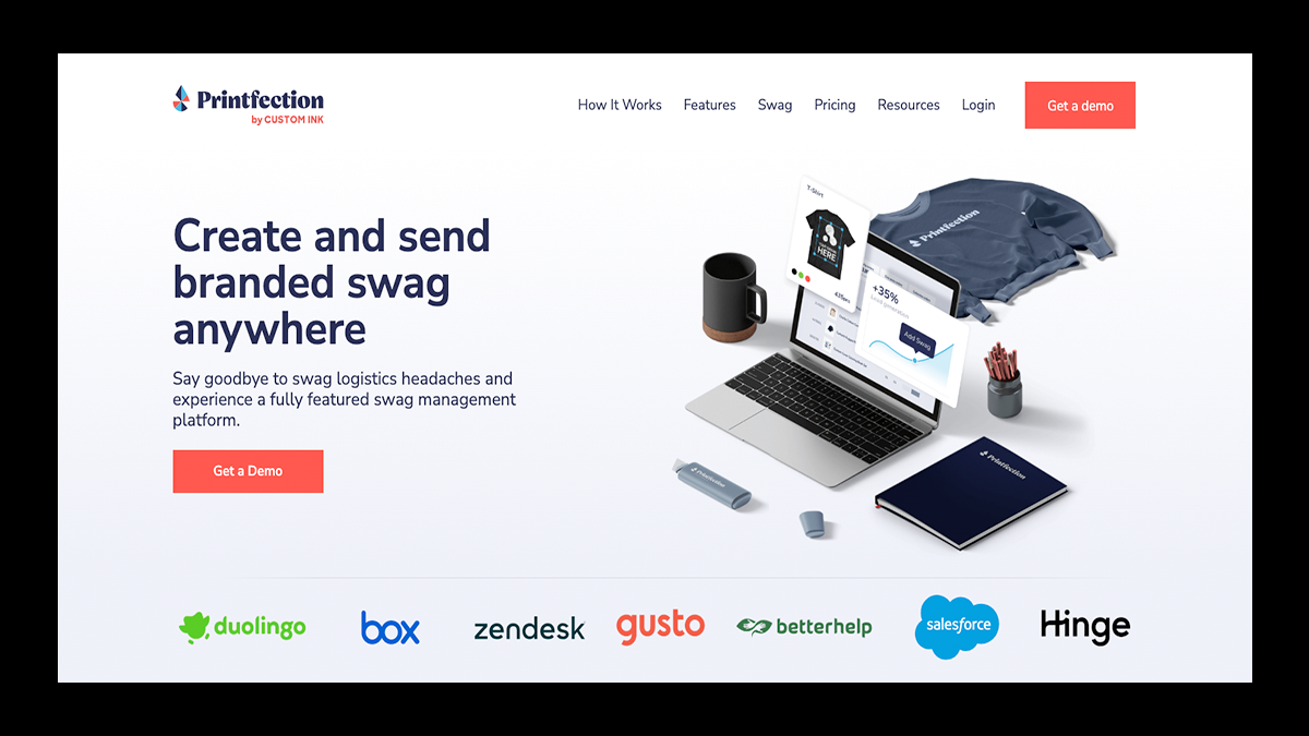 Printfection is a premium swag management platform tailored for businesses that treat branded merchandise as a strategic marketing and culture-building tool.
