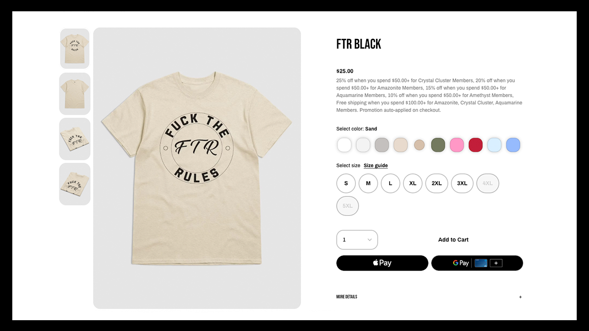 Now that you've done all of your research into the popular colors, from classic white and black shirts to shades of blue, purple, green, brown, and red, it's time to start selling your shirts on Fourthwall.