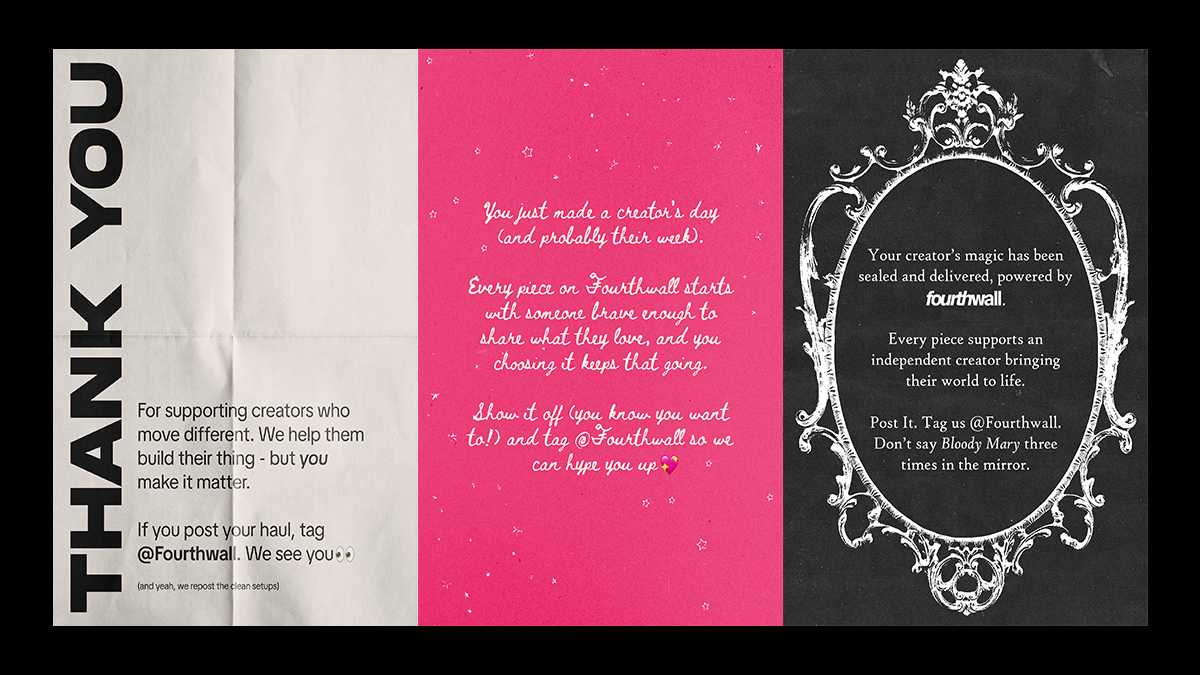 Think of them like mini brand moments that go in the box with your merch. Fan opens the package, and boom—a personal touch that actually means something.