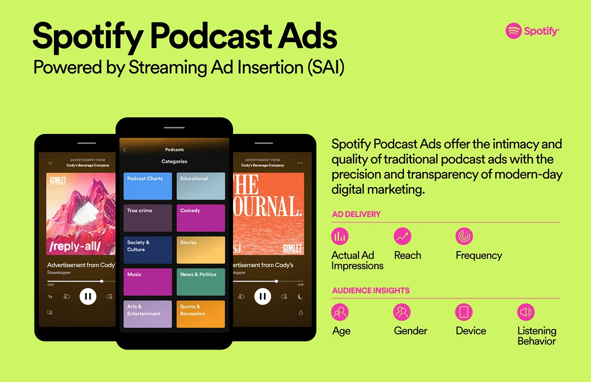 The most common ads are host-read ads, pre-roll ads, and post-roll ads. Host-read advertisements are integrated into the podcast episode and are most typical as they offer an authentic and more genuine connection with podcast listeners.