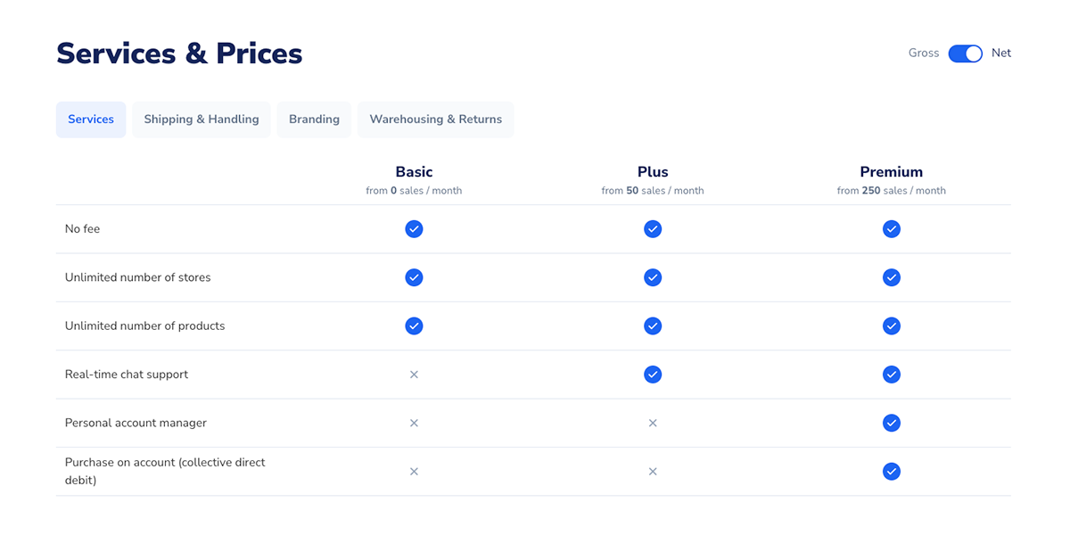 You only pay for what you produce, such as product-based costs, printing fees, shipping, and optional branding or warehousing services.