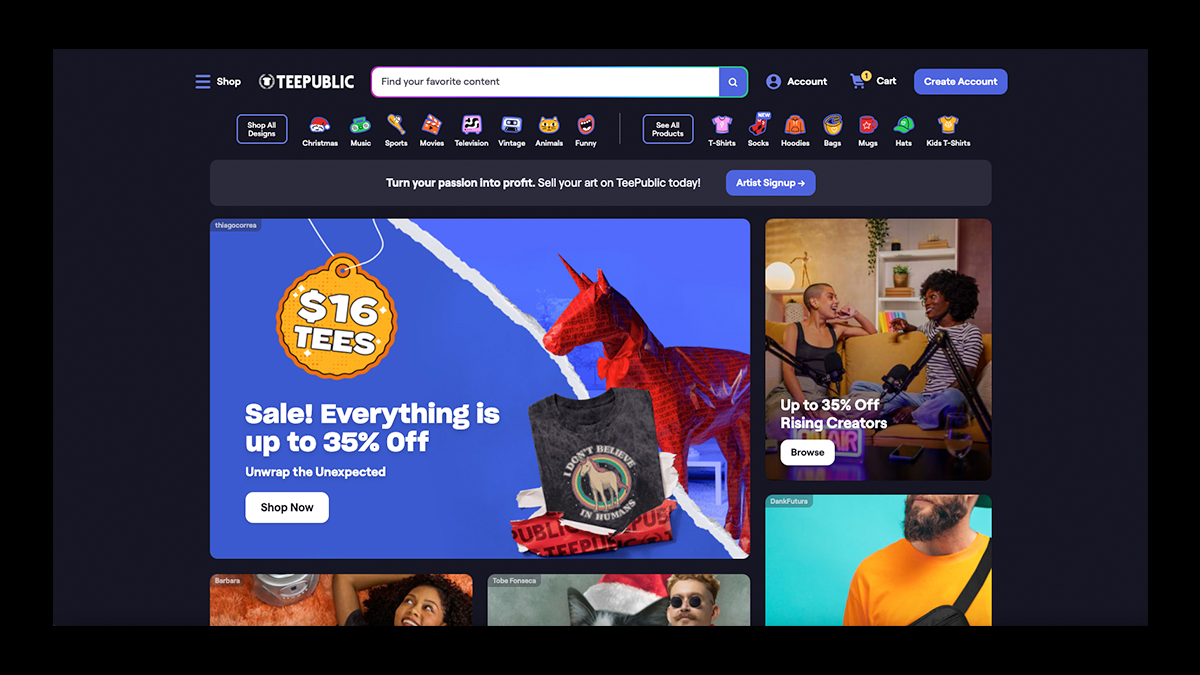 TeePublic is one of the most frictionless ways for creators to monetize their artwork, especially if you want to skip the hassle of building a store, managing fulfillment, or handling customer support.