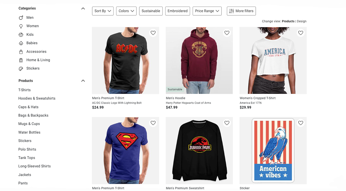 In both cases, Spreadshirt handles printing, shipping, returns, and customer support, making it especially appealing to beginners or creators looking for a low-effort way to get designs online quickly.