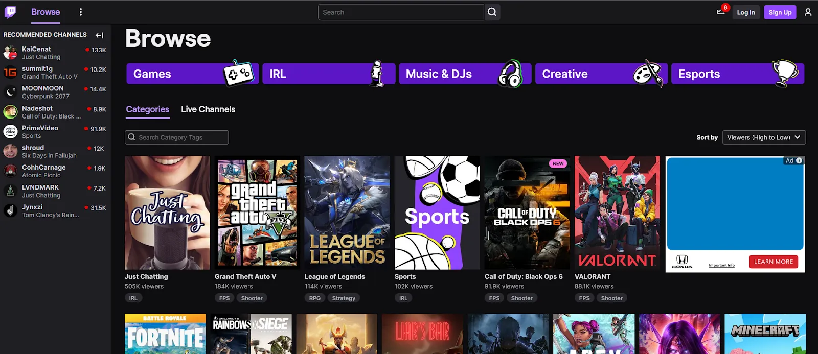 Twitch is a live streaming service platform that launched way back in June 2011 as a spinoff of streaming platform Justin.tv. Twitch is heavily focused on gaming, and has been since its inception; but over the years it has expanded to include a much wider variety of content, including talk shows and “Just Chatting” streams, live music performance, art streams, cooking streams, IRL (in real life) and travel streams, and more.