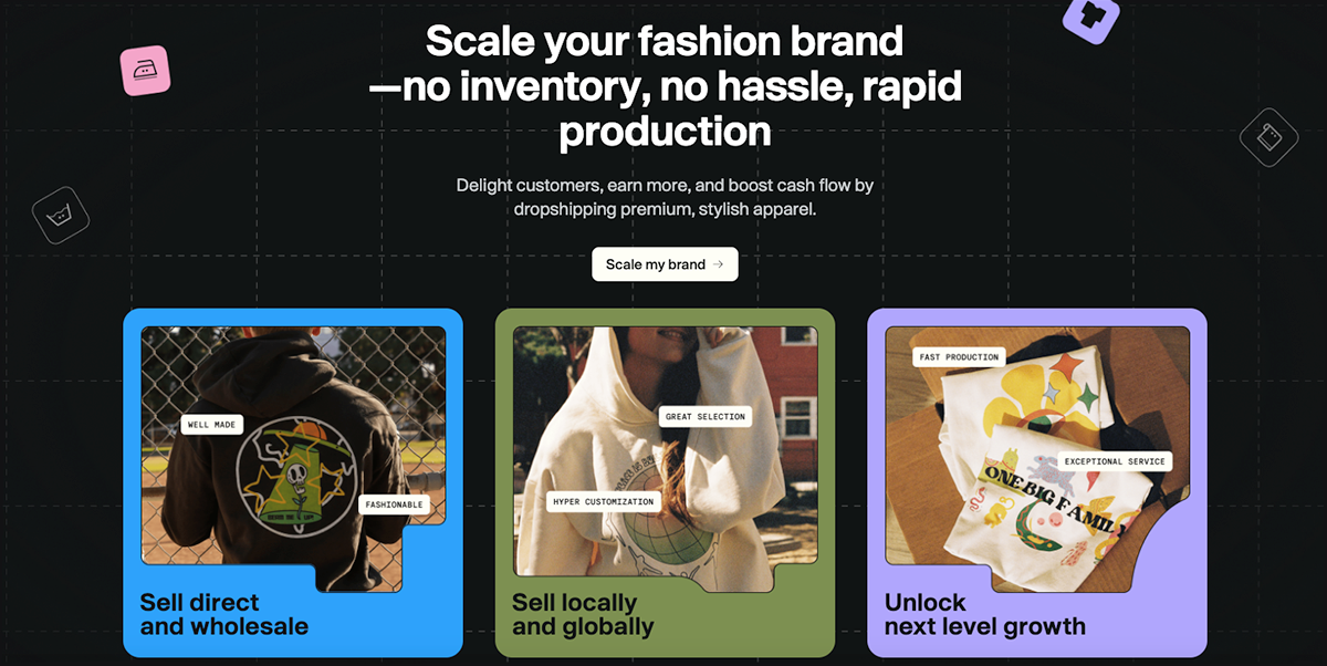This makes it easy to launch a clothing brand with low risk and simple workflows.