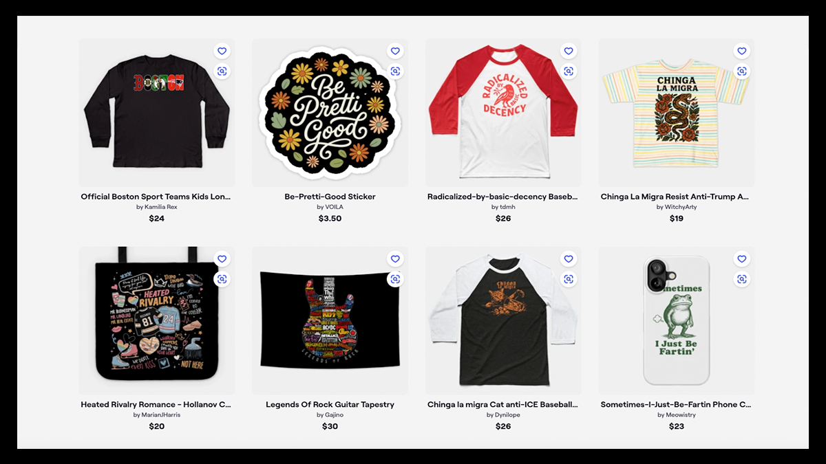 Artists can open their own shop for free, set their own pricing, and sell across a wide range of products from T-shirts and hoodies to tote bags, phone cases, and home goods.