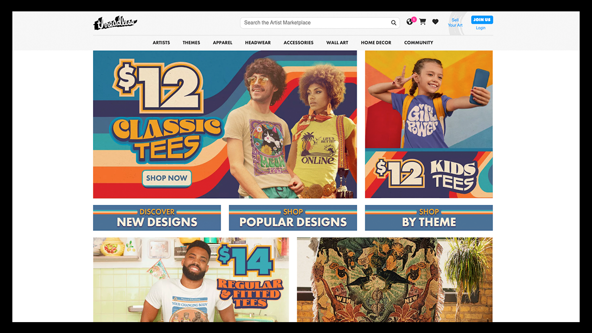 Threadless is very similar to TeePublic as it's also a community-driven platform for artists to upload their designs and sell print-on-demand goods within an extensive marketplace.