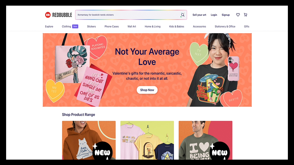 Like TeePublic, artists can upload their designs, choose which products to apply them to, and earn royalties on every sale while Redbubble handles printing, shipping, and customer support.