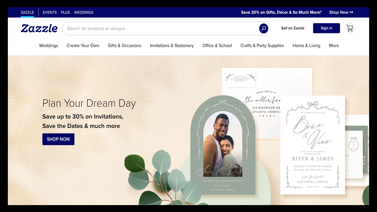 With Zazzle, you can sell everything from apparel and mugs to wedding invitations, business cards, office supplies, and home décor, making it especially useful for artists making giftable and event-based designs.