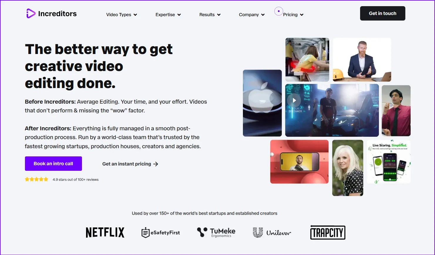 With over 80 million YouTube views to date, Increditors are known for their expertise in editing for YouTube, with experience in color grading, music videos, brand videos, sound design, explainer videos, and even VFX. You can even get a dedicated video manager and a dedicated video editor assigned to your channel so they can adapt your style and help you improve it.