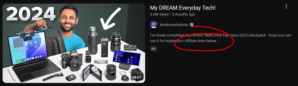Affiliate links and sponsorship deals are both on the potential revenue table for YouTube tech channels like Mrwhosetheboss.