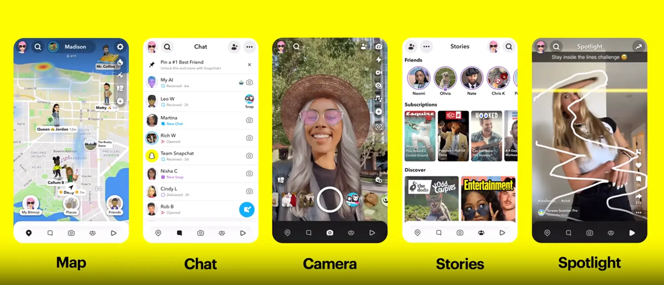 Snapchat, however, doesn’t focus on virality; instead, it favors personal engagement through messaging, Snap Maps, and curated Snap Ads shown between Snapchat Stories.