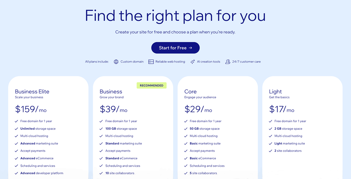 If selling online is even a small part of your plan, Wix’s entry pricing is hard to justify.
