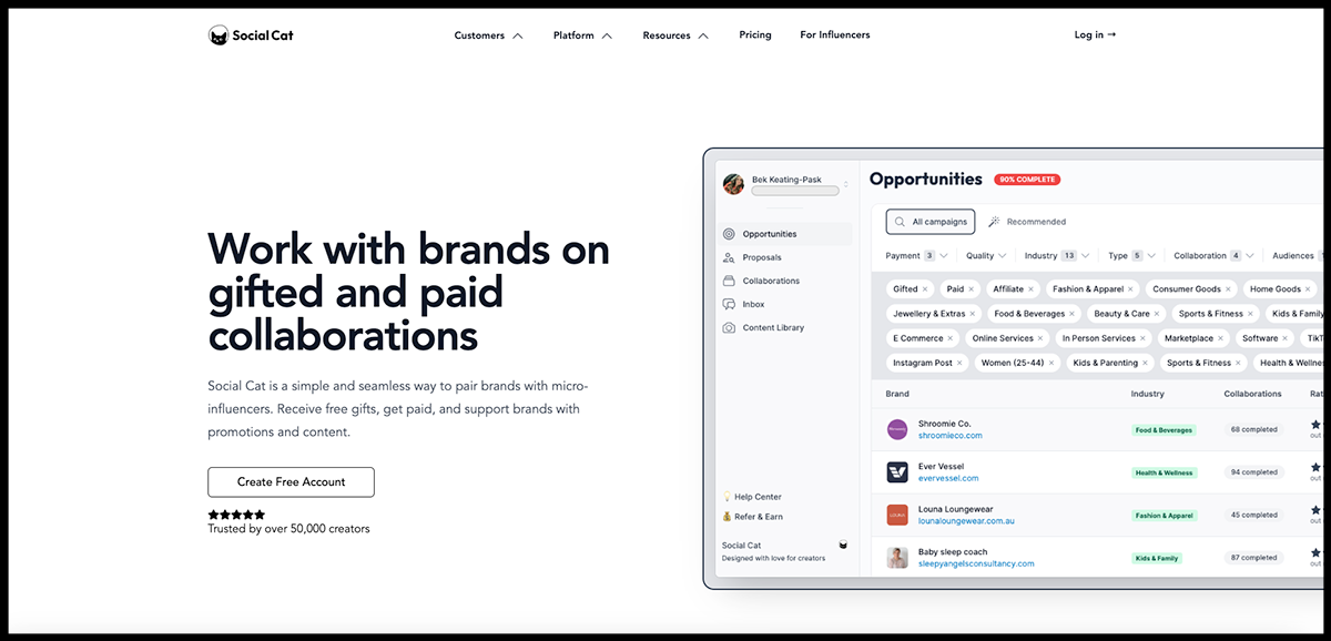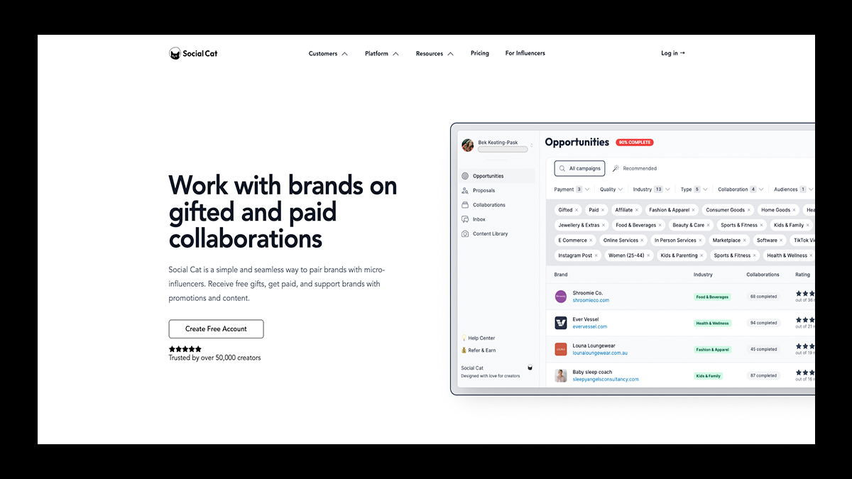 If you're a micro-influencer seeking authentic, no-drama brand deals, Social Cat makes it ridiculously easy to connect with startups and small businesses eager to collaborate.