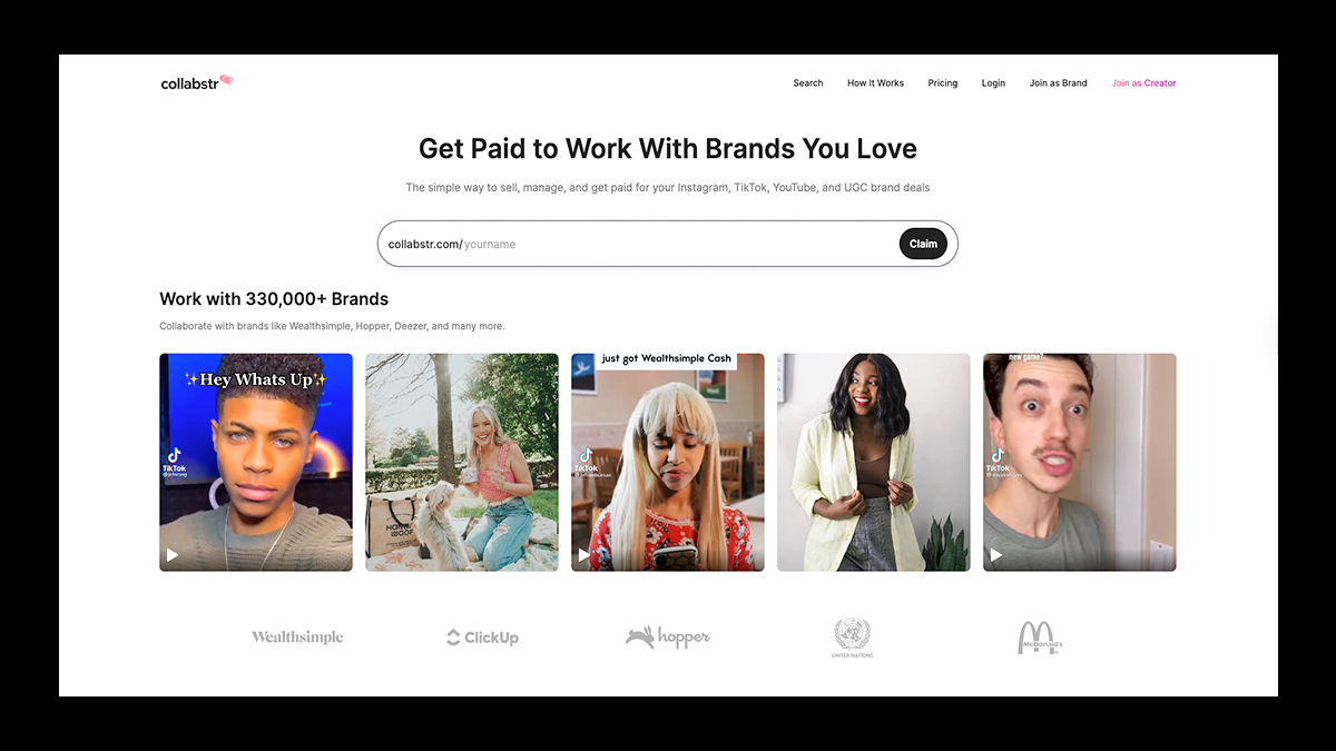 With over 130,000 brands like McDonald’s, Wealthsimple, Deezer, and Hopper using the platform, Collabstr connects creators with paid collaborations across fashion, beauty, lifestyle, fitness, comedy, and more.