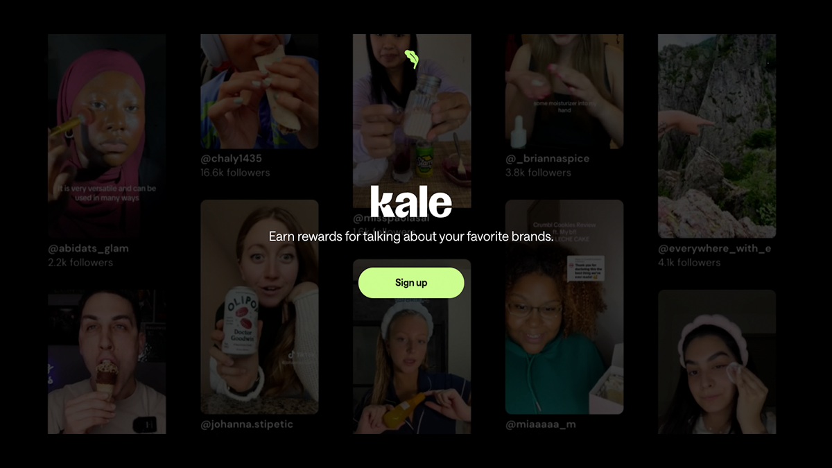 If you're tired of waiting for brands to find you and want to take creative control, Kale gives you the freedom to produce, submit, and get rewarded based on how well your content performs.