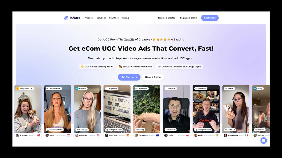 Influee is a UGC creator platform where you can work with brands from 23 different countries and get paid to create video content for their marketing campaigns.