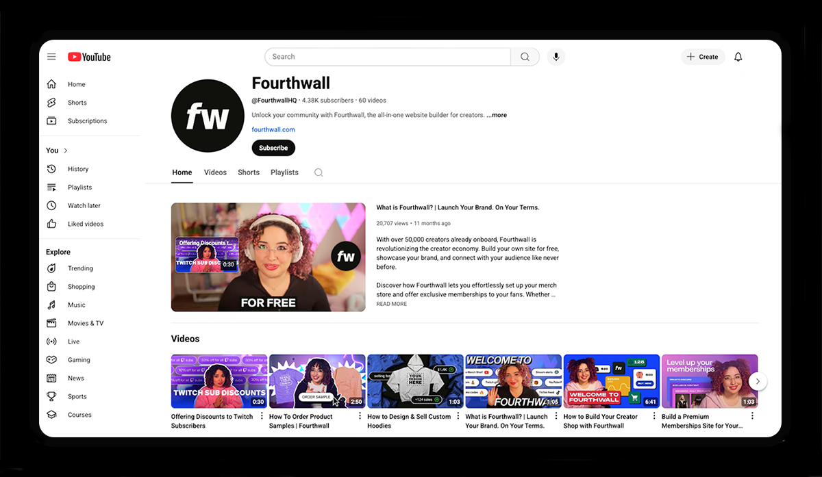 Whether you’re sharing tutorials, behind-the-scenes content, or exclusive episodes, Fourthwall gives you the tools to own your brand, monetize on your terms, and scale your community—all without juggling multiple services or paying for expensive OTT add-ons.