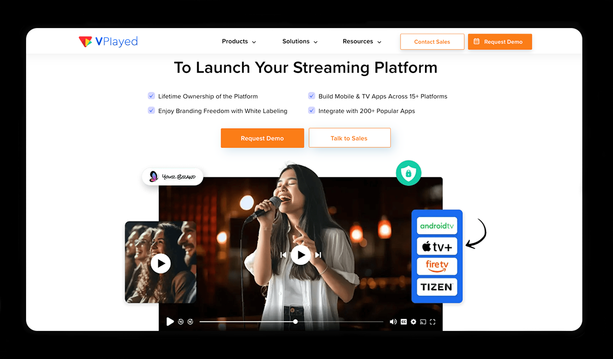 On the technical side, VPlayed offers 4K video playback, multi-DRM protection, adaptive bitrate streaming, and custom OTT apps for 15+ platforms, including Apple TV, Roku, and Fire TV.