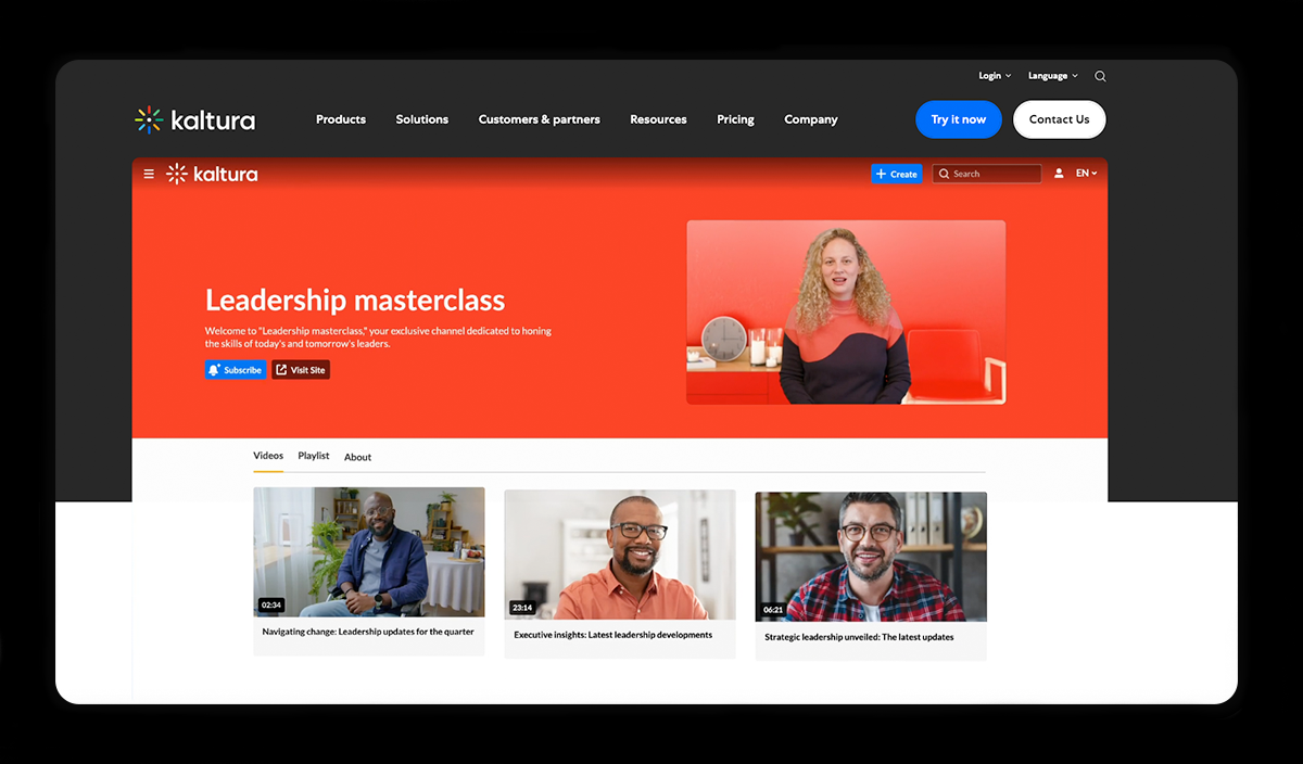 With cloud-based hosting, adaptive bitrate streaming, and interactive video elements such as digital whiteboards, in-video quizzes, and chat tools, Kaltura transforms video into an active and engaging experience for audiences.
