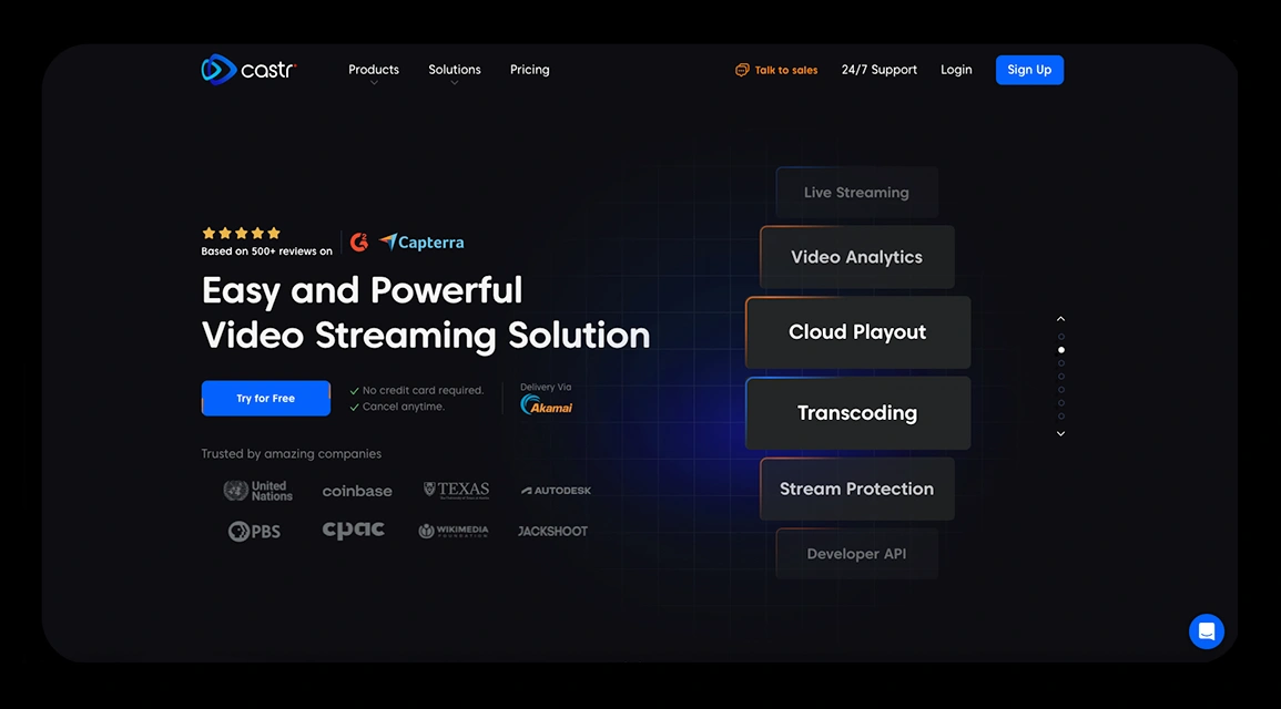 From multistreaming and cloud recording to TV-style playout and paywall monetization, Castr covers the full spectrum of video production and delivery, without forcing you to string together half a dozen different services.