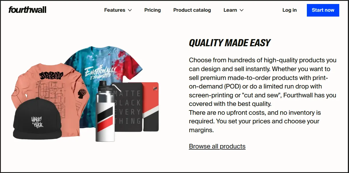 There are no monthly fees, no upfront costs, and no contracts to use Fourthwall. You set your prices and choose your own margins. Here is how our pricing and splits work when you sell: