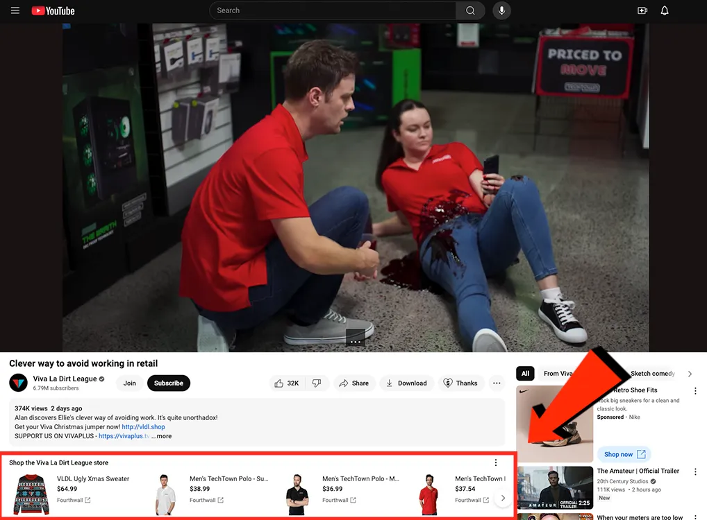 Fourthwall’s integration with YouTube Product Shelf (Merch Shelf) offers VLDL a seamless way to showcase their merchandise directly beneath their YouTube videos, bridging the gap between content and commerce.