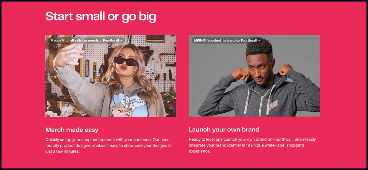 Sign up with Fourthwall today to explore these features and start building your own powerful, recognizable, monetizable brand!