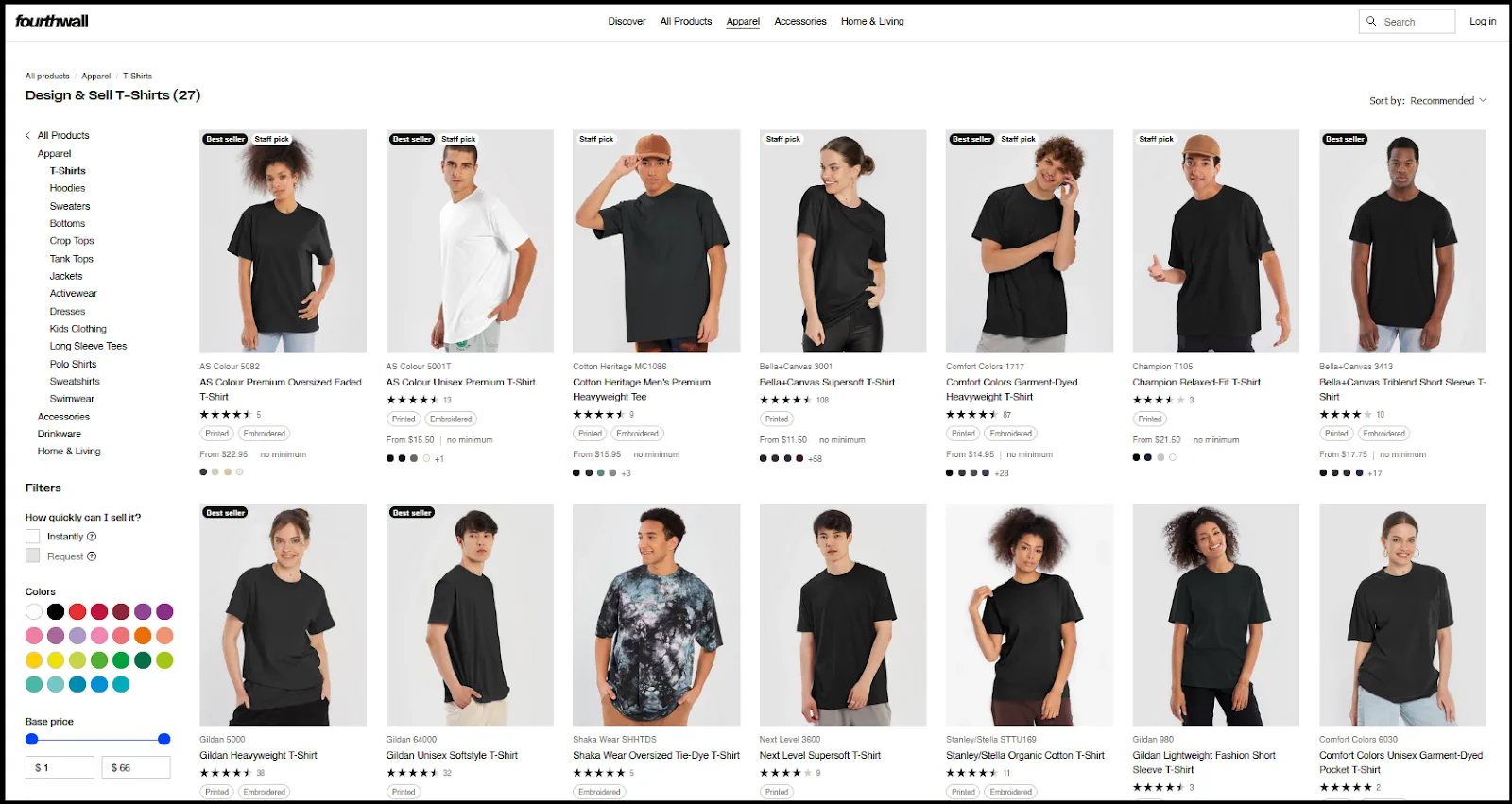 Fourthwall has a huge selection of T-shirts ready for you to customize with your own designs!