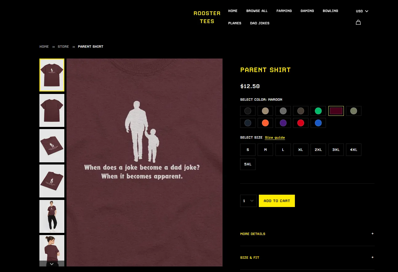 Focus on universal themes like parenting, food, or work, or themes specific to your niche, whether that’s trombone players, coders, or carpenters. The more relatable your humorous phrase is to your audience, the more likely you are to sell more T-shirts.