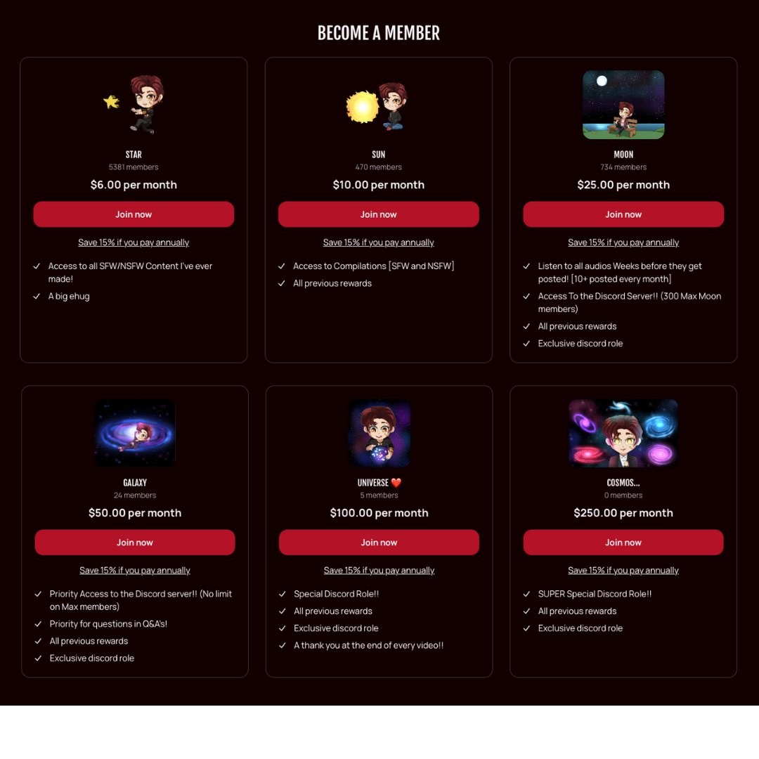 YSF wanted a sustainable way to fund high-quality content and focus on ASMR full-time. Fourthwall Memberships allowed him to monetize without sacrificing creative freedom while giving subscribers access to hundreds of hours of exclusive ASMR videos.