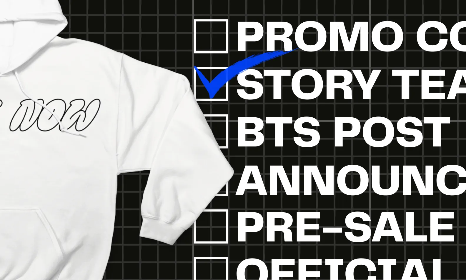 Start teasing your merch ahead of time on your social channels to build anticipation. You can do this through behind-the-scenes looks, countdowns, or sneak peeks of your products. The more excited your supporters are, the more likely they’ll buy when it launches.