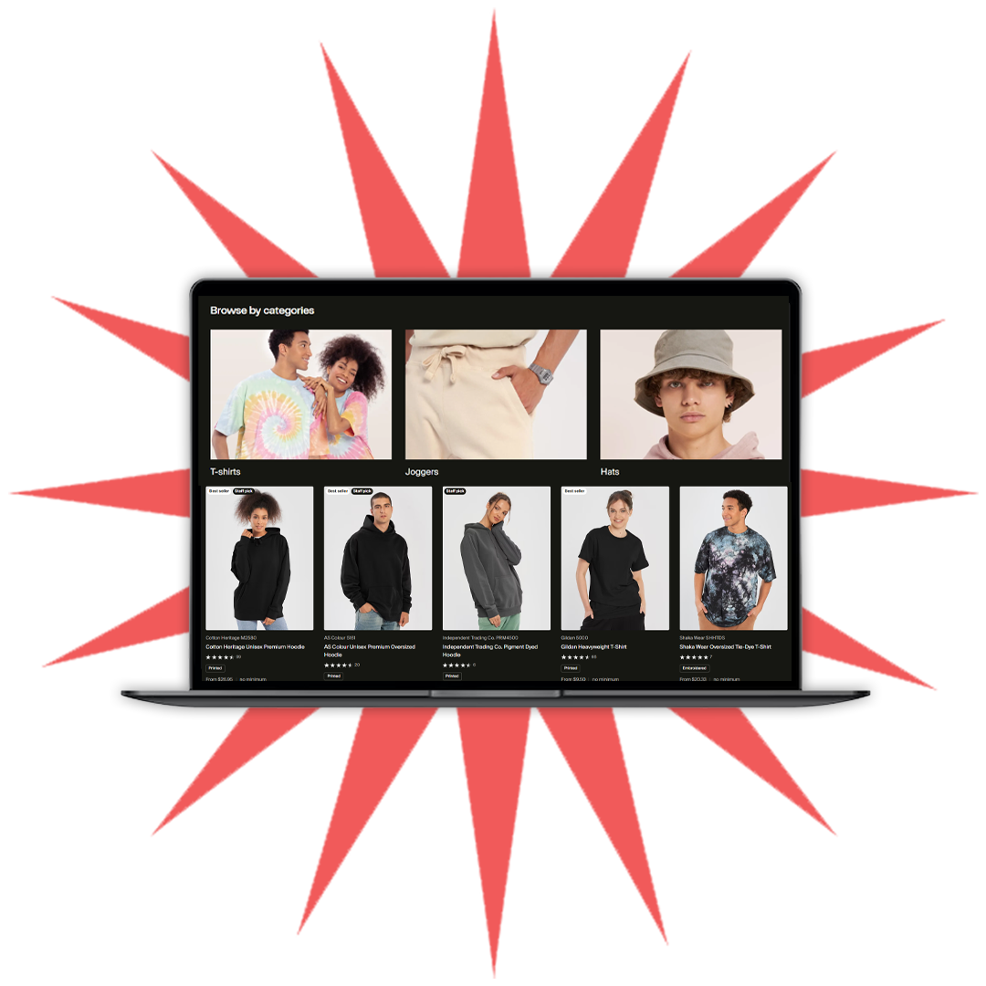 We use only the best equipment, specially tuned for maximum print settings. The outcome is ~1.5x the ink for users that want to offer screen-printed quality without holding any inventory.