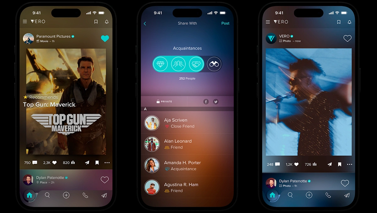 Unlike Facebook, Vero is entirely ad-free, putting users in control of their feeds. It also allows users to categorize connections (e.g., close friends, acquaintances) and share content selectively, enhancing privacy and personal engagement.