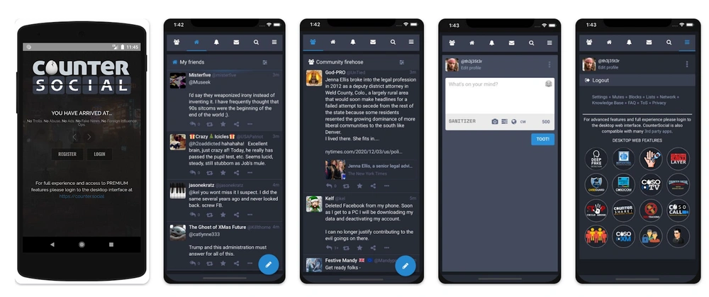 Free from ads and bots, CounterSocial provides real-time news updates and allows users to post polls, photos, and microblogs with a 500-character limit.