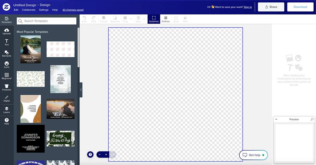 Its design editor is beginner-friendly, allowing you to upload your own artwork or create designs from scratch using built-in templates, text tools, and community-created assets.