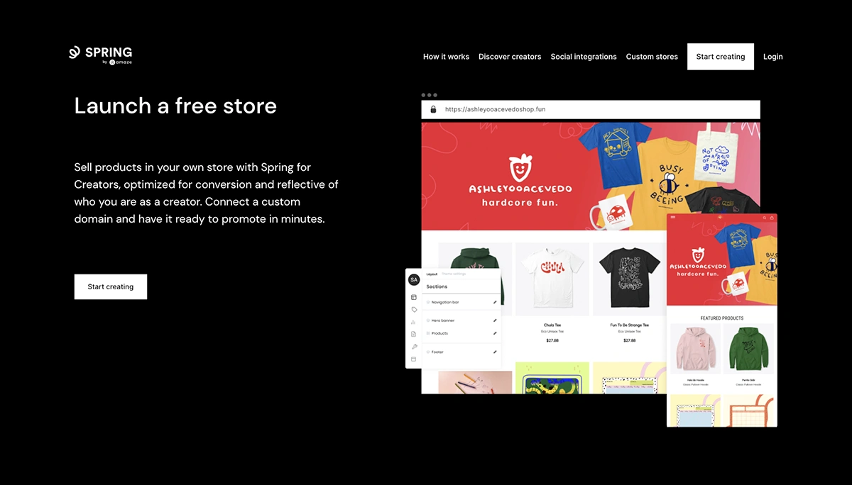 From apparel and home décor to digital downloads and even unique items like plush dolls and phone cases, Spring handles everything (including printing, fulfillment, shipping, and payment processing) so you can focus on designing and growing your brand.