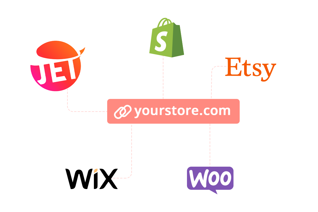 JetPrint connects directly with top eCommerce platforms such as Shopify, Etsy, WooCommerce, and Wix, making it easy to sync products, track orders, and manage listings from a single dashboard.